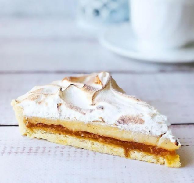 Состав: Песочный корж, конфитюр из марокканских мандаринов с цедрой, нежный заварной крем с бурбонской ванилью и шапочка из взбитых сливок.