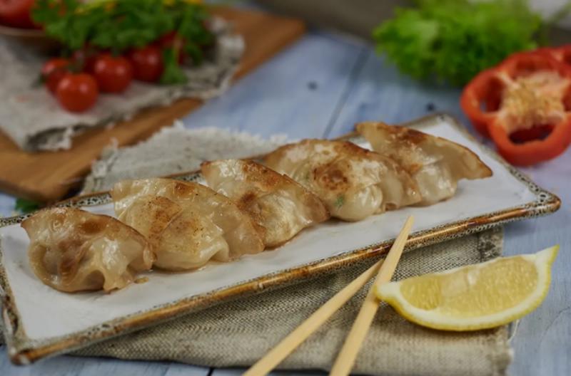 Состав: Обжаренные пельмени с пряной уткой, грибами шиитаке, соус гедза