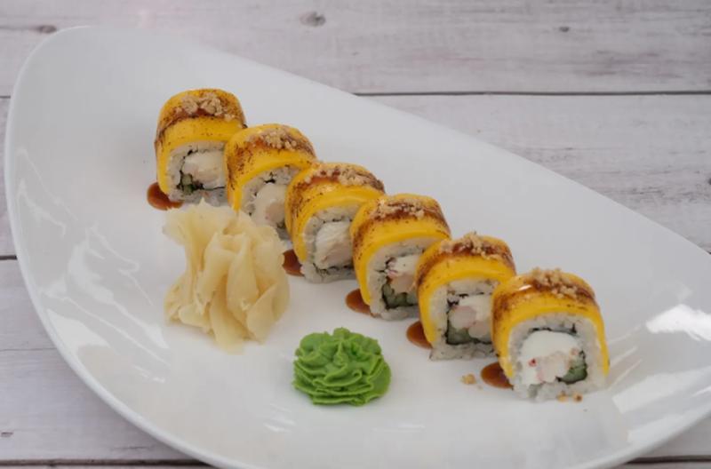 Состав: Креветки тирровые,огурцы,сыр филадельфия,сыр чеддер,соус манго чили